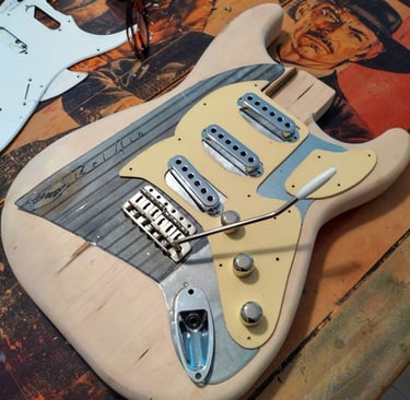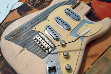 My guitars are made to look well-loved. Don't worry about fingerprints, or polishing it after every session. Work it. Fall asleep with it. Drool on it. It's a close friend—your horse. Enjoy the wabi-sabic beauty, it's not there by accident.